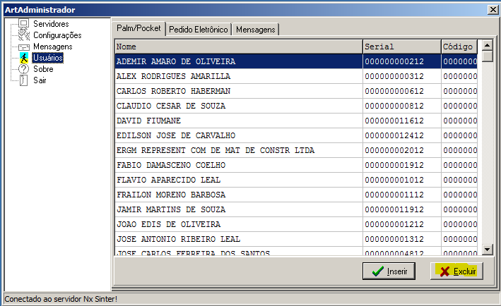Por fim, escolha o vendedor a ser excluído (com o cuidado para não excluir um vendedor ativo pois caso isso ocorra, será necessário recadastrar o vendedor com o mesmo serial) e por fim, clique em excluir.