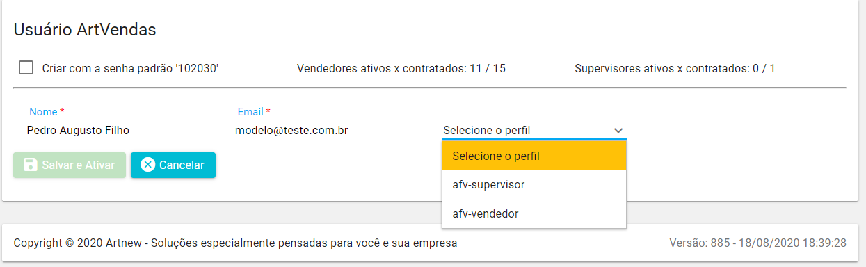 3.4 - O perfil deve ser selecionado (Supervisor ou Vendedor).