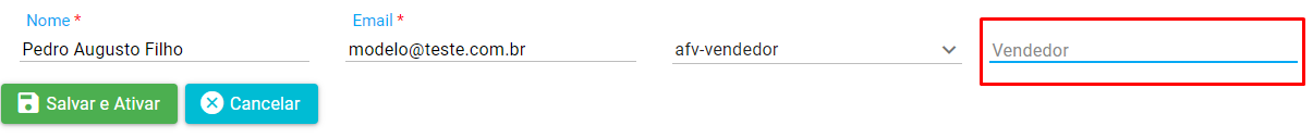 3.5 - Ao selecionar no perfil <afv-vendedor> será disponibilizado o campo para inclusão do código e nome (conforme cadastro no sistema de gestão).