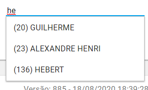 3.5.1 - Ao digitar o nome do usuário/vendedor, serão apresentados os registros que contém a referência digitada, conforme exemplo abaixo.