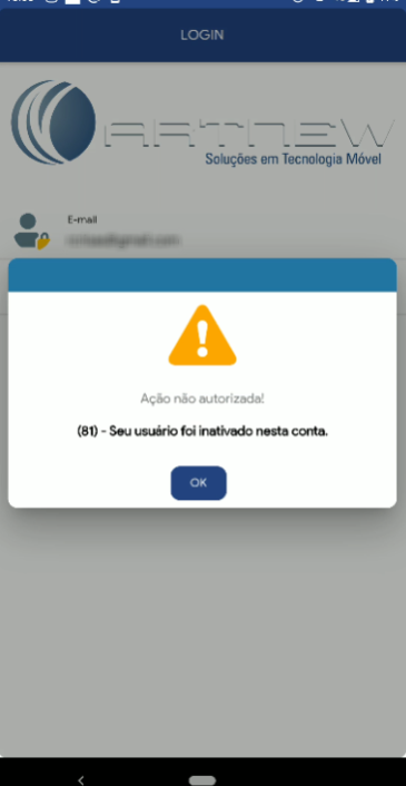 6.3 - Caso haja uma tentativa de acesso no ArtVendas, aparecerá um aviso de que foi desativado.