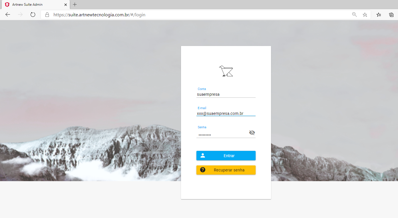 1 - Acesse o Link: https://suite.artnewtecnologia.com.br/